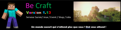 Hey chère visiteur, tu viens découvrir de nouveaux server ? Laisse moi te présentez celui-ci BeCraft est un server vanilla -Plusieurs sites vous permettent de voter et de gagner différentes récompenses sur le server